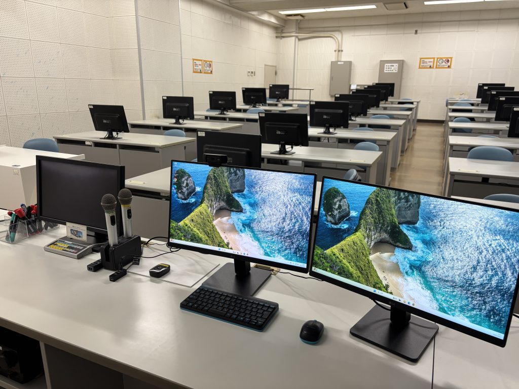 共4-306 語学ラボ室 MALLラボシステム(チエル社製Calabo MX)です。 教室名 語学ラボ室 建物名 共通教育棟4号館 教室番号 共4-306 定員 41名 対応講義 スペイン語入門・フランス語入門・大学英語 等 時間割表 月 火 水 木 金 1 08:30 - 10:00 2 10:20 - 11:50 3 12:50 - 14:20 4 14:40 - 16:10 5 16:20 - 17:50 6 18:00 - 19:30 7 19:40 - 21:00